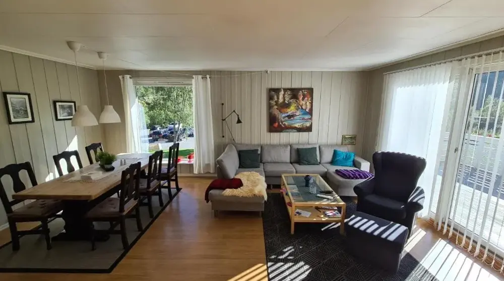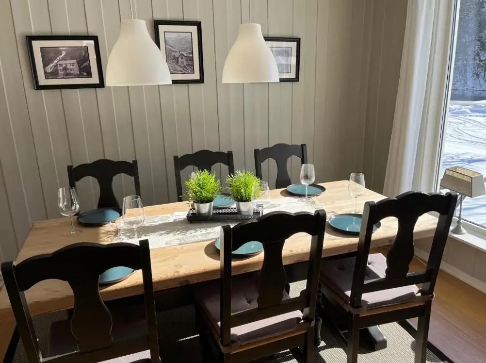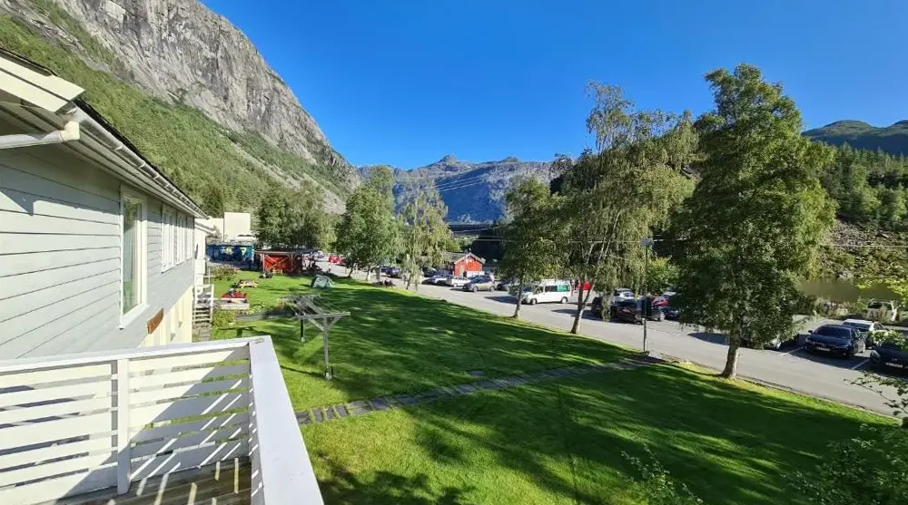 Trolltunga Lodge offers free Wi-Fi throughout its family-friendly rooms, ensuring guests have reliable connectivity while enjoying spacious accommodations designed for groups. Free on-site parking eliminates the hassle of finding space elsewhere, making arrival and departure seamless. Located along Skjeggedal in Tyssedal near Odda, this lodge serves as a convenient base for exploring Hardanger’s scenic landscapes without sacrificing modern comforts. Within a 15-minute drive lies Folgefonna National Park, home to glaciers and hiking trails ideal for outdoor enthusiasts seeking dramatic fjord views. Twenty minutes away by car are two local favorites: Andersen Kondit, known for traditional Norwegian pastries, and Kafe Pause, offering cozy dining options alongside regional specialties. For those craving higher-altitude adventures, Fjellheisen—a mountain cableway system—is accessible within fifty minutes’ drive through winding roads leading toward steep cliffs and panoramic vistas over Sognefjord. Meanwhile, Bergen Airport Flesland sits roughly two hours away by car, providing direct access to international flights via Norway’s second-largest hub.